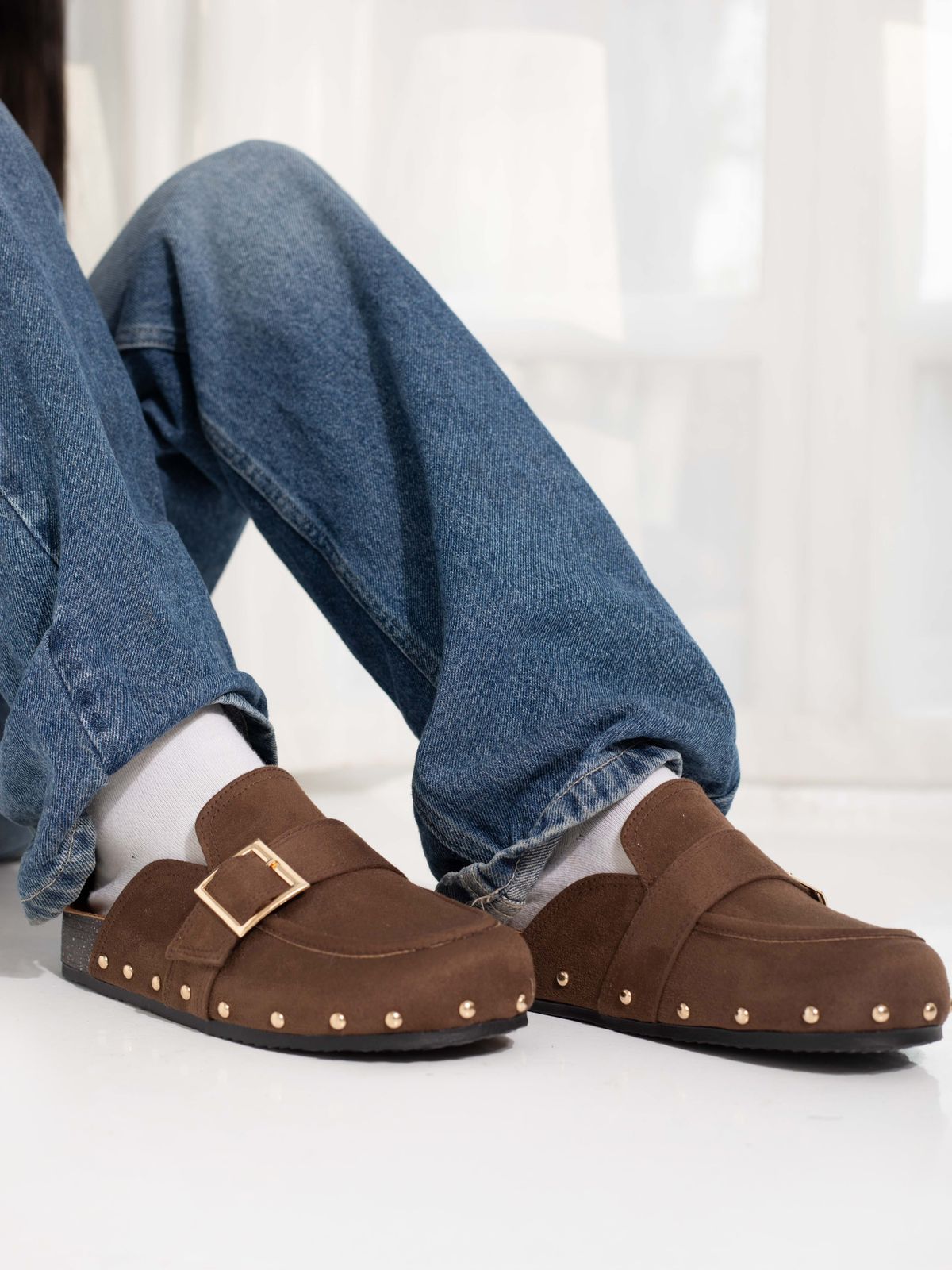 Brown Studded Mules